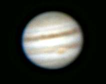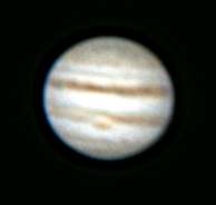 Knapp nach Mitternacht also am 29.10.2000 begann ich eine neue Fotoserie - die Bedingungen waren allerdings fast unveraendert schlecht - auf Jupiter waren visuell die beiden Hauptwolkenbänder und noch ein zusätzöiches dünnes Band gerade erkennbar. In den stärkeren Bändern Unregelmäßigkeiten und: der GRF war eindeutig als rosaroter Fleck erkennbar (durch Luftunrihe unterbrochen). Auf Saturn war zeitweise und nicht durchgehend die Cassiniteilung erkennbar. Trotzdem schoss ich etwa 700 Photos - bei Jupiter mit über einer Stunde zwischen zwei Serien um die Bewegung des GRF zu dokumentieren. Interessant ist vielleicht, dass auf den Fotos ohne GRF die Wolkenbänder fast parallel laufen (dafür eine Polregion deutlichst schief zu sehen ist) - bei den Fotos mit GRF laufen die beiden Hauptwolkenbänder deutlich auseinander (nicht parallel).