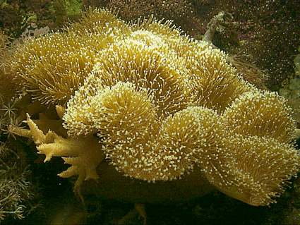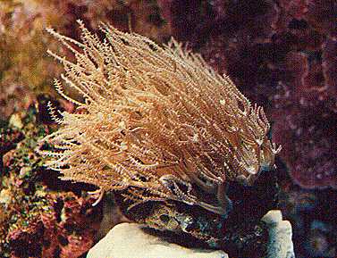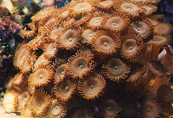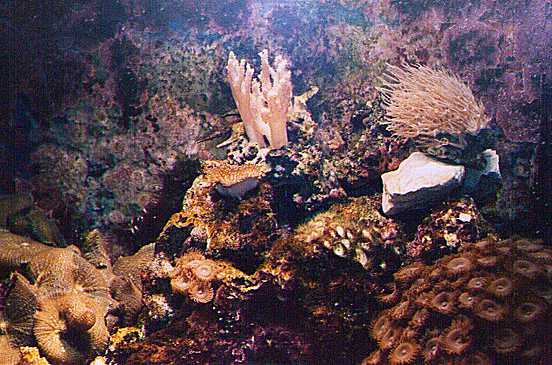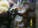 Im obersten Bild sind zwei winzige pilzartige Lederkorallen zu entdecken - sind jetzt (erstes Bild) zu fast 30 Zentimeter Durchmesser herangewachsen! Im zweiten Bild sieht man einige der etwa 200 Polypen der braunen pumpenden Xenia, im dritten Bild sieht man die zum grossen Teil mit hunerten Polypen mit Röhrenkoralle bewachsenen Rückwand, im vierten Bild sieht man die beiden Pilzlederkorallen von oben, fünftes Bild: grüne Scheibenanemonen, sechstes Bild braune Scheibenanemonen, unter den Pilzlederkorallen sind die Krustenanemonen, im Bild eins sieht man rechts eine runde Steinkoralle ...